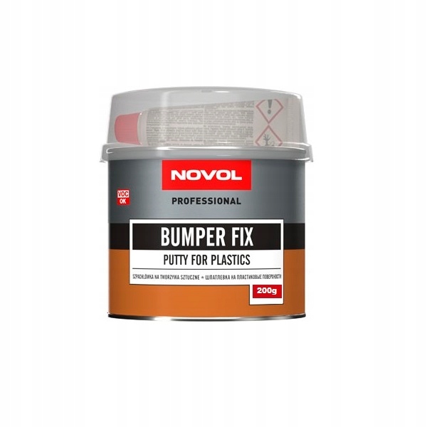 NOVOL BUMPER FIX обладает очень высокой гибкостью и отличной адгезией к большинству пластиков ( кроме полиэтилена и тефлона). Он также имеет удовлетворительную адгезию к полипропилену, что позволяет заполнять негрунтованные поверхности.