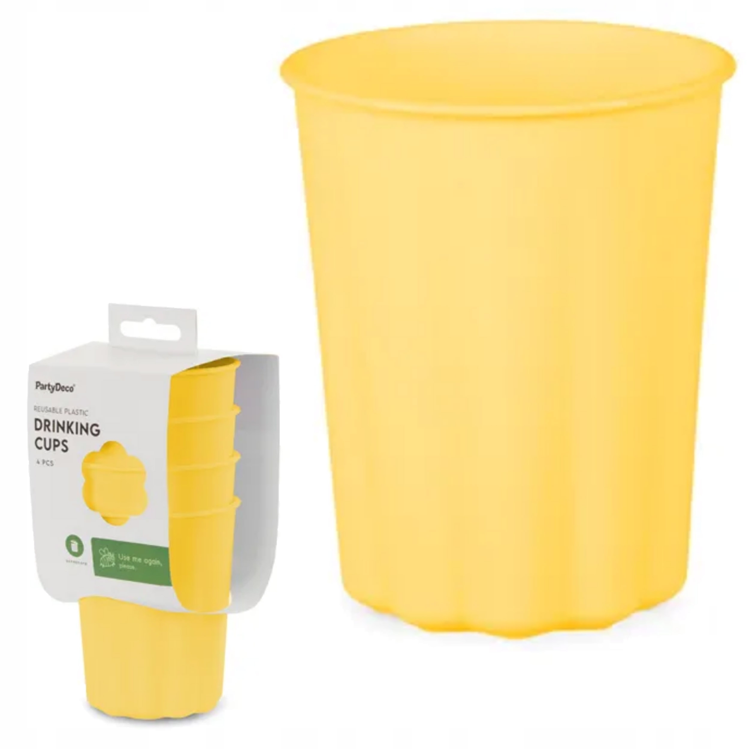 Пластиковые стаканчики из оборки 220 мл желтые 4 кусочки вечеринка