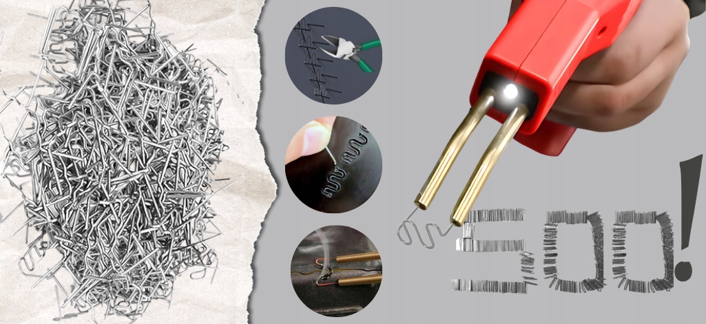 ПЛАСТИКОВІ СКОБКИ ДЛЯ ПЛАСТИКОВОГО ЗВАРЮВАЛЬНИКА ВЕЛИКИЙ НАБІР 500 ШТ. 0,8 ММ ХВИЛЯ
