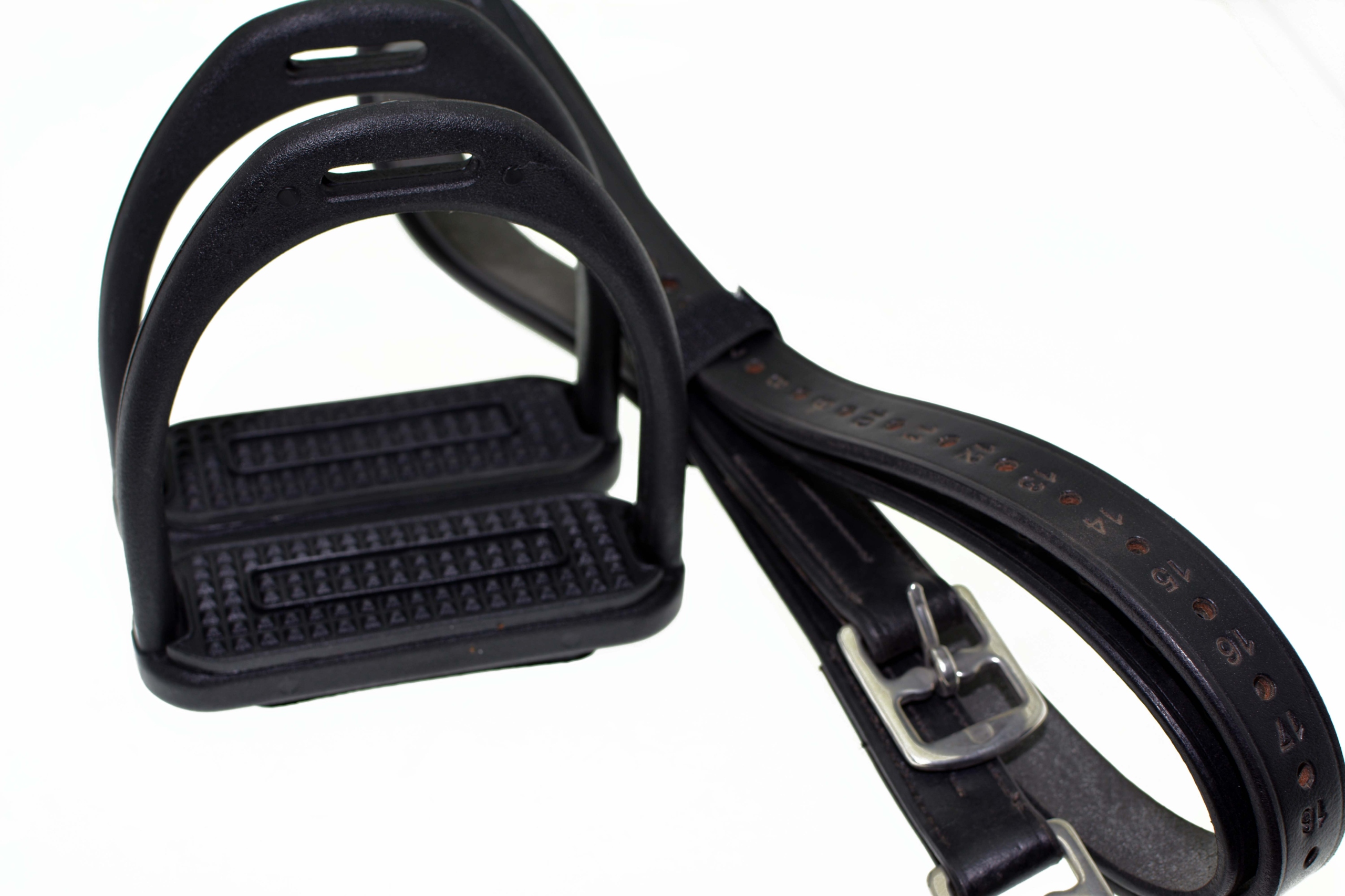 Пластмассовые композитные стремена + кожаные стремена 135 см, пронумерованные стремена позволяют легко укорачивать или удлинять длину. Стремена длиной 12 см изготовлены из очень прочного и чрезвычайно легкого композита, устойчивого к растрескиванию и истиранию. Они характеризуются очень высокой устойчивостью к низким температурам.