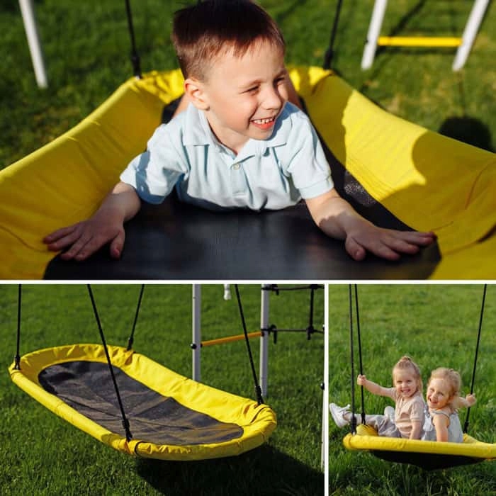 Вы ищете долговечный и безопасный игровой комплект для детей? Садовый качель с металлической рамой и баскетбольной корзиной является отличным выбором для семей, которые ценят активность на открытом воздухе. Высокое качество изготовления и возможность замены аксессуаров означают, что набор будет служить в течение многих сезонов.
