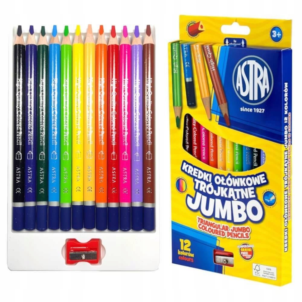 - Мелки-карандаши Astra треугольные большие, 12 цветов.