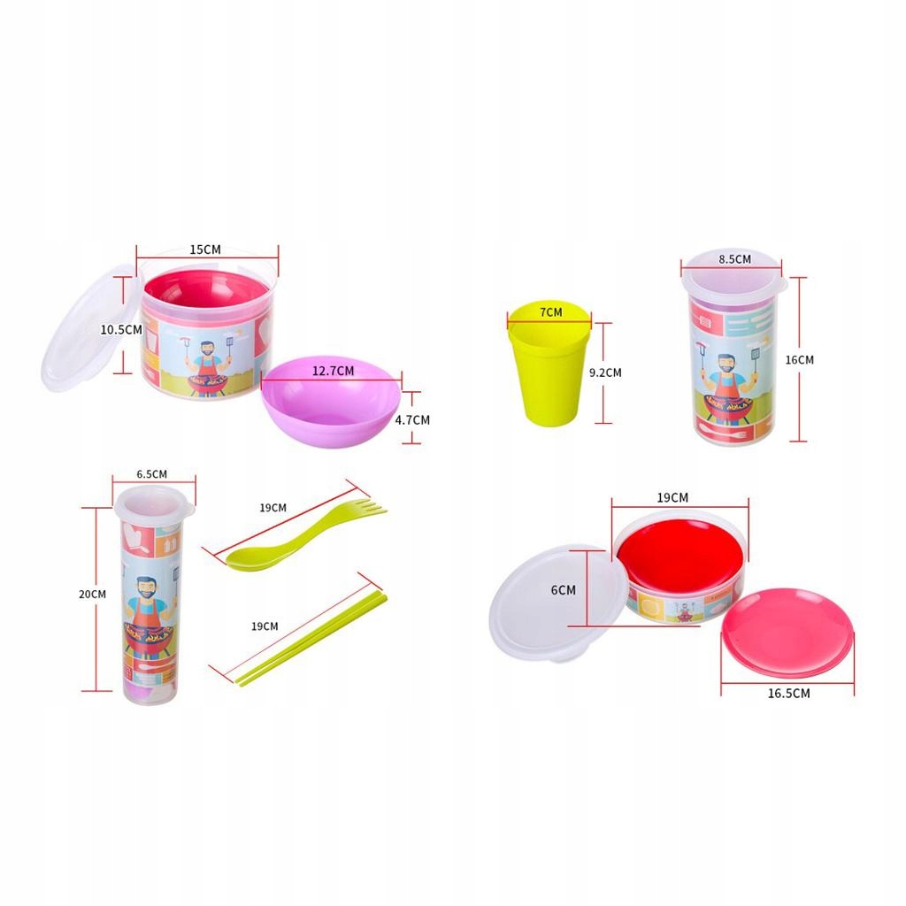 Упаковки, содержащие 6 чашек, 6 мисок, 6 тарелок, 6 пар палочек для еды и 4 коробки для хранения