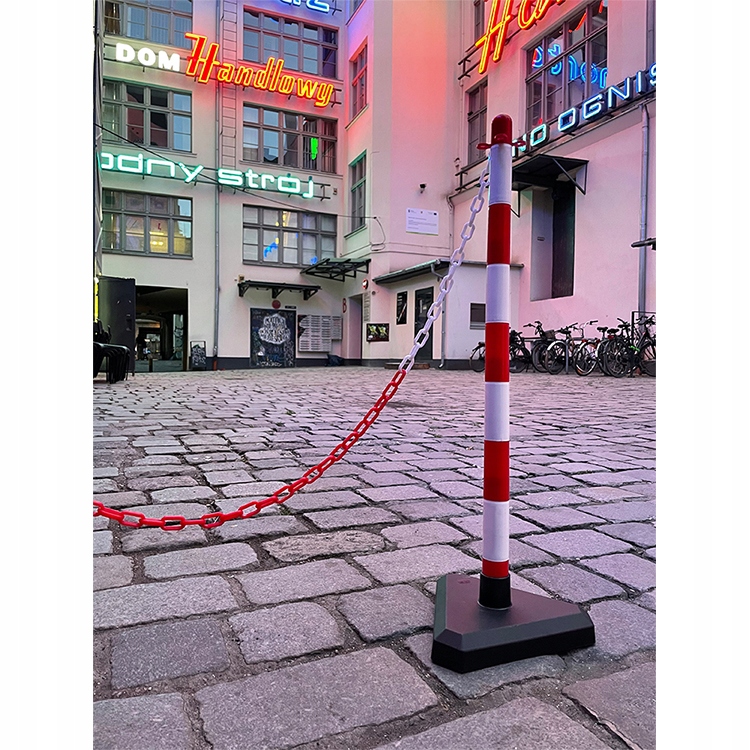 Бело-красный барьерный столб 110 см, треугольное основание – СПОСОБ УСТАНОВКИ: