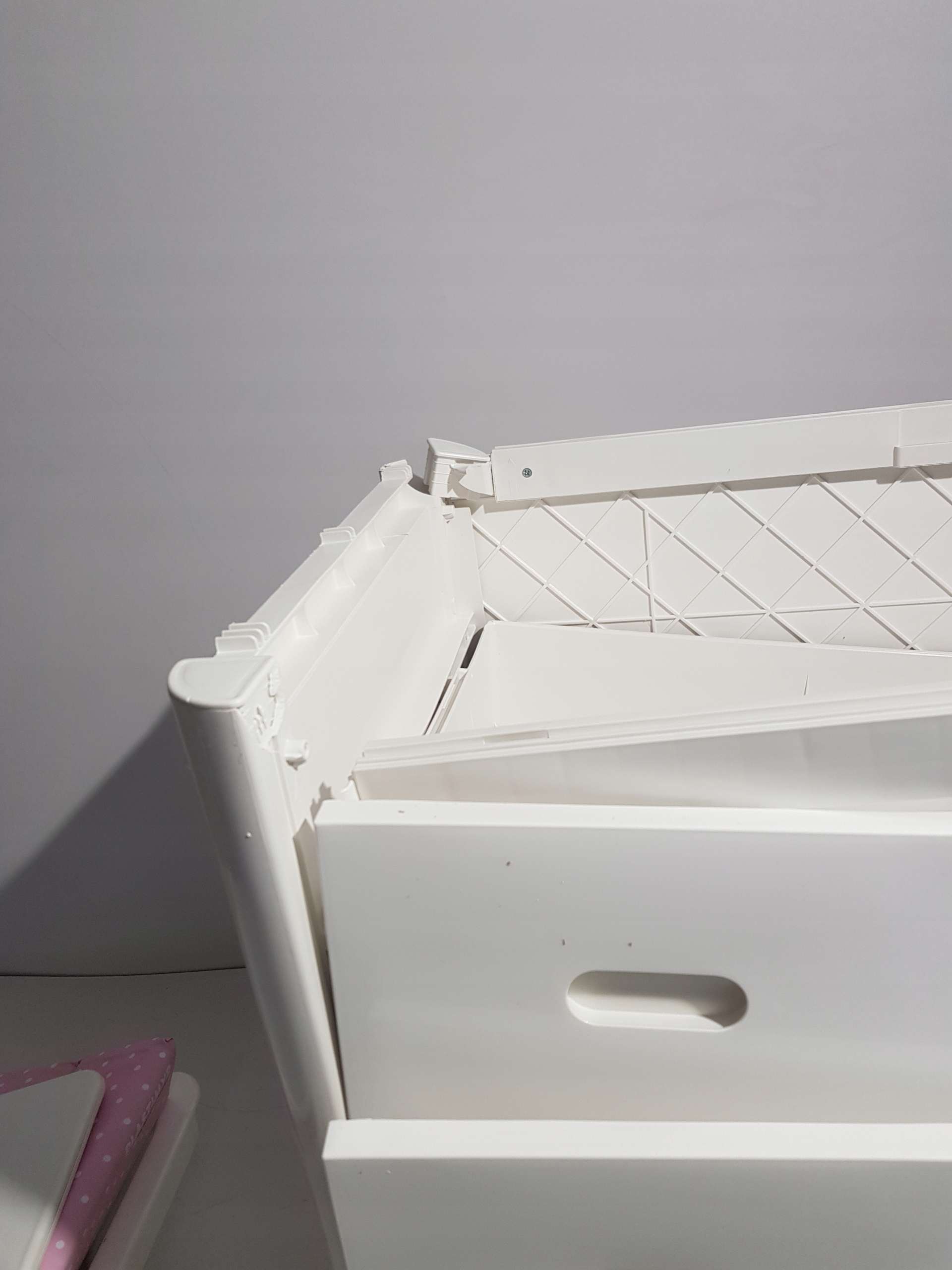 - После использования его можно использовать как пеленальный столик и ванночку для детской комнаты, предварительно сняв поддон.