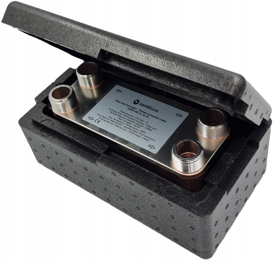 ПЛАСТИНЧИЙ ТЕПЛООБМІННИК 34 ПЛАСТИНИ 45кВт 4 x 1" SANITLINE SL1634 + ІЗОЛЯЦІЯ