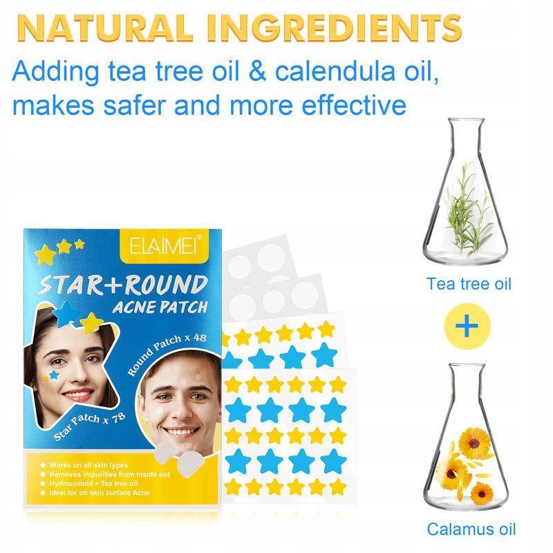 Пластырь от прыщей Star содержит натуральные ингредиенты, масло чайного дерева и гидроколлоиды, подходят для всех типов кожи, безопасны и более эффективны.