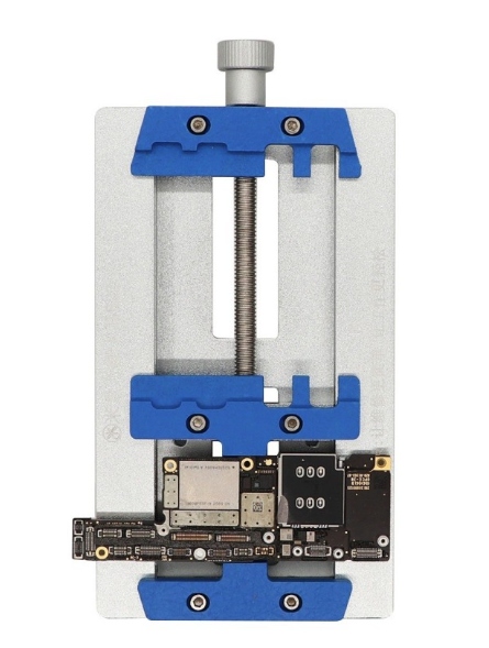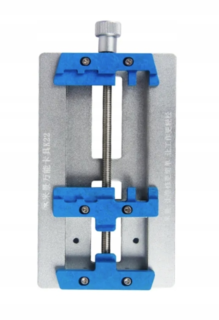 Сервисный держатель K22 предназначен для монтажа печатных плат и материнских плат смартфонов во время сервисных и паяльных работ. 3 зажимные губки, раскрытие которых регулируется винтом. Металлическая ручка из алюминиевого сплава и губки, устойчивые к высоким температурам при пайке и балансировке.