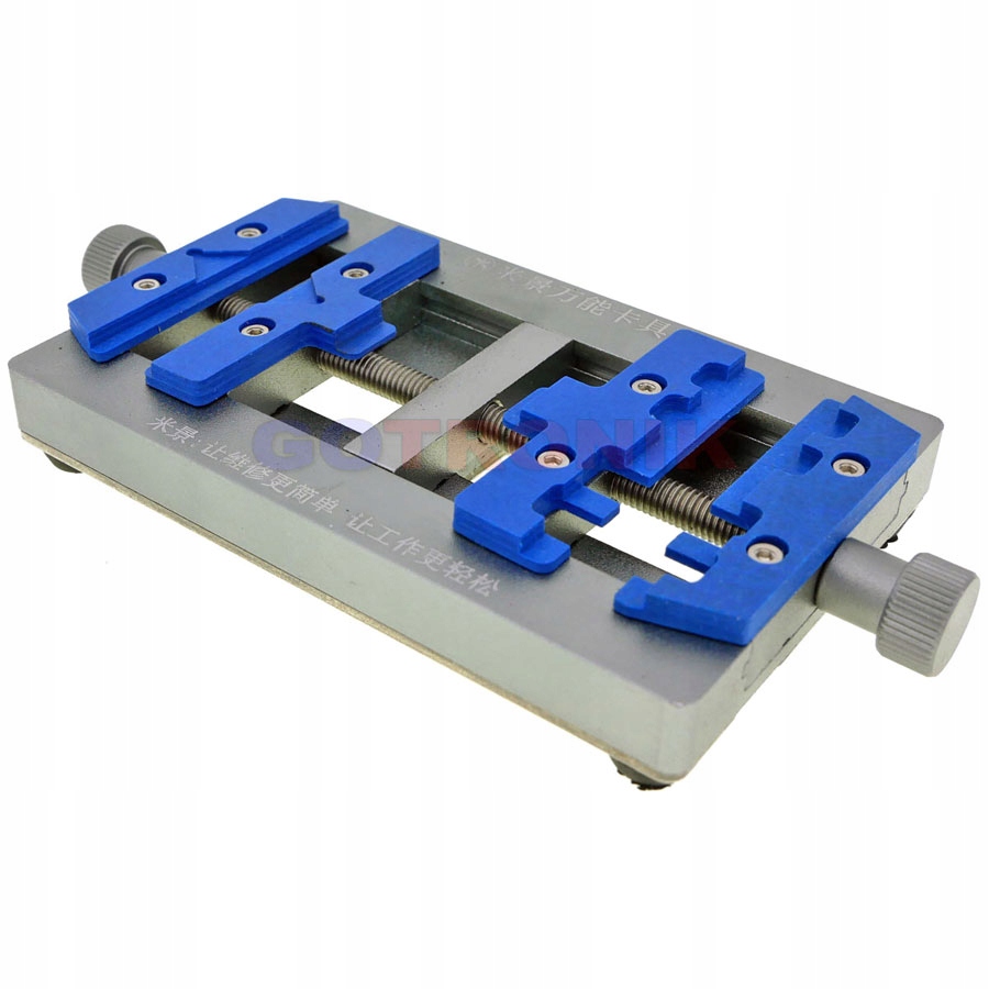 Сервисный держатель К23 предназначен для монтажа печатных плат и материнских плат смартфонов при сервисных и паяльных работах. 2 пары зажимных губок, раскрытие которых регулируется двумя отдельными винтами. Металлическая ручка из алюминиевого сплава и губки, устойчивые к высоким температурам при пайке и балансировке.