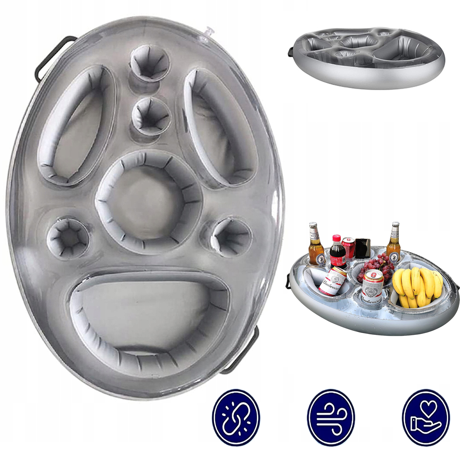 Просматривая «ПЛАВАЮЩИЙ БИЛЬЯРНЫЙ СТОЛ ДЖАКУЗИ НАДУВНОЙ БАР НАПИТКИ СЕРЕБРЯНЫЙ С 8 ОТВЕРСТИЯМИ» данный товар из каталога «Подставки для напитков» вы можете быть уверены, что после оформления заказа, доставки в Украину, вы получите именно то, что заказывали, в оговоренные сроки и европейского качества.
