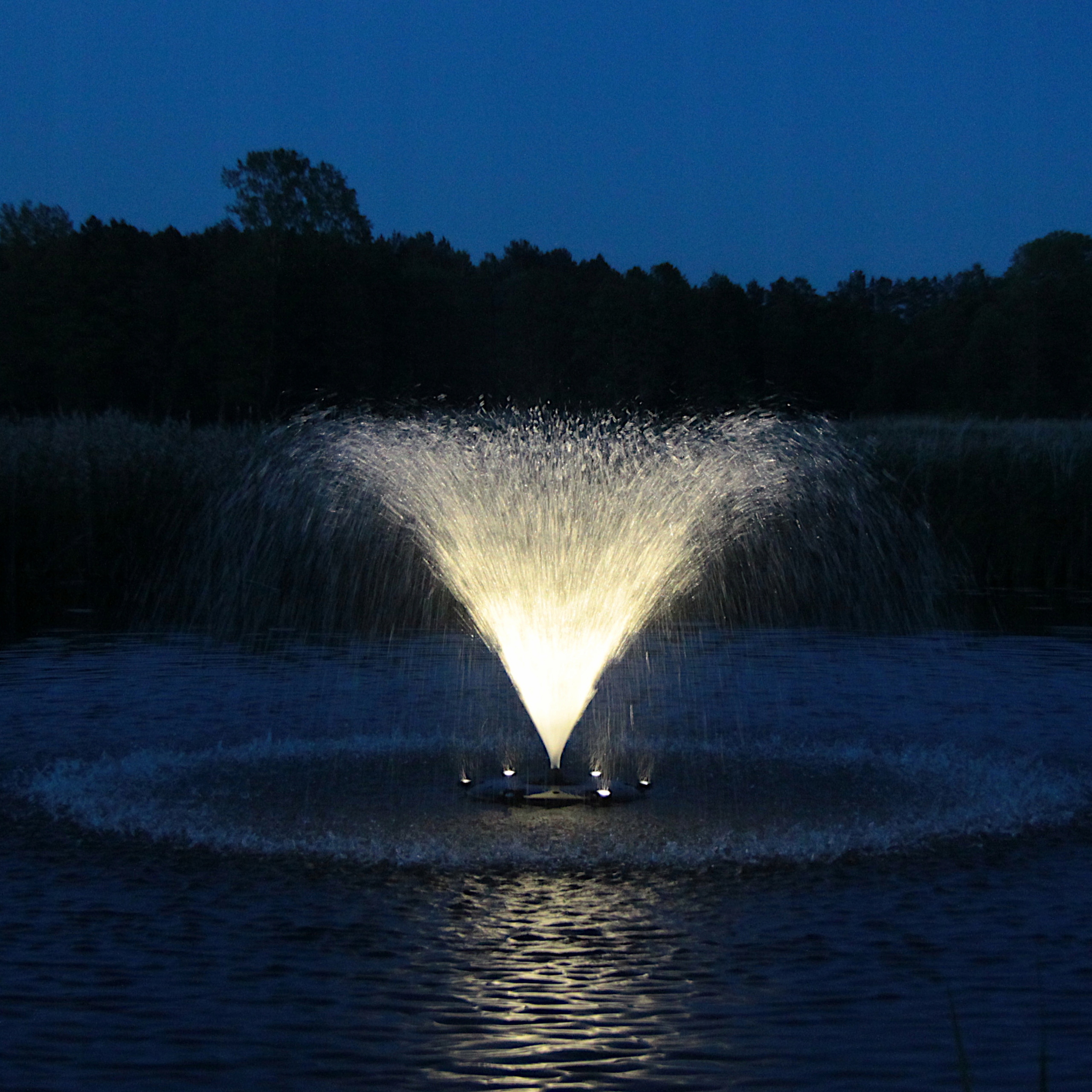 Плавающие фонтаны – это дополнение, украшающее пруды, пруды, озера и, прежде всего, парки с водоемами. Особенно интересно они смотрятся в темное время суток, ведь правильно подобранное освещение придает фантастический вид и создает неповторимую атмосферу. Помимо декоративной ценности, фонтаны имеют множество практических преимуществ, особенно плавающий фонтан FJ-600, производительность насоса которого составляет 55 000 л/ч. К ним относятся аэрация и принудительная циркуляция воды, что в значительной степени ограничивает развитие водорослей и личинок комаров. Кроме того, он улучшает состояние рыб и балансирует температуру воды.