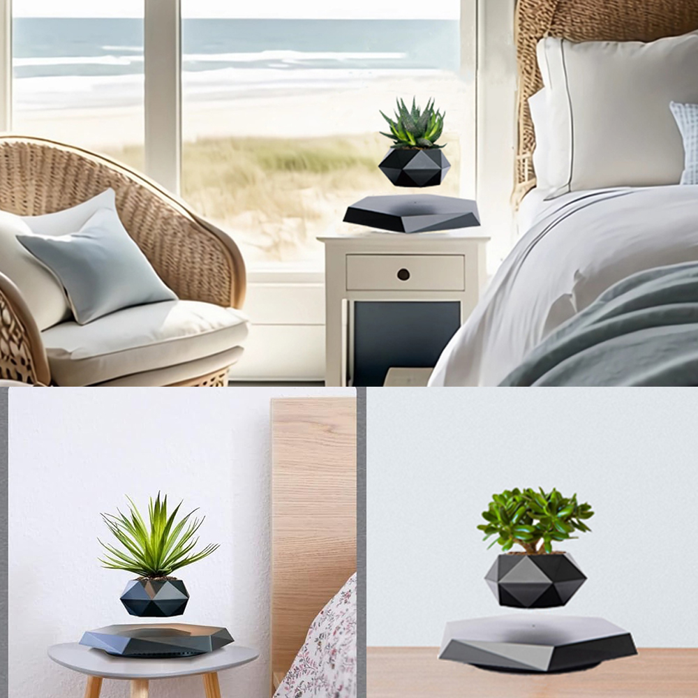ПЛАВАЮЩИЙ МАГНИТНЫЙ ЦВЕТОЧНЫЙ ГОРШОК, ВРАЩАЮЩИЙСЯ НА 360°, для суккулентов ДЛЯ УКРАШЕНИЯ СТОЛА