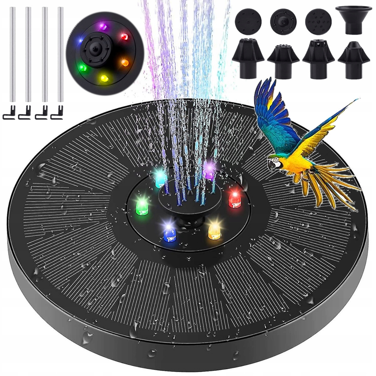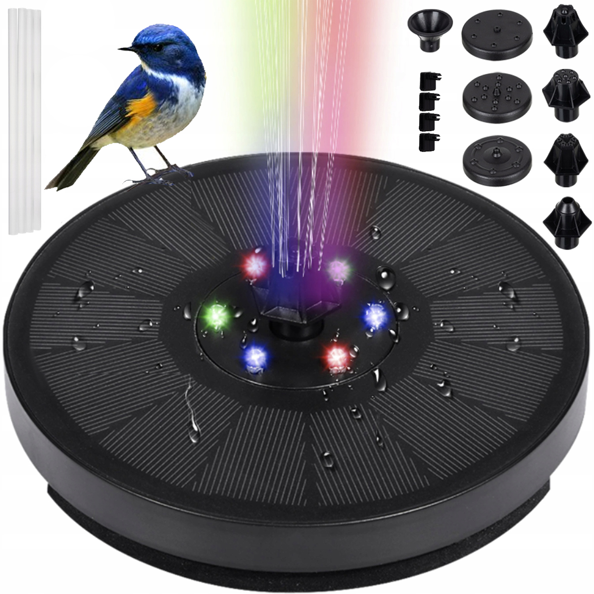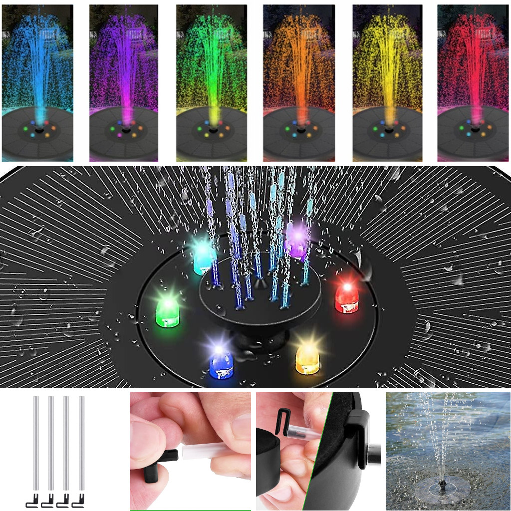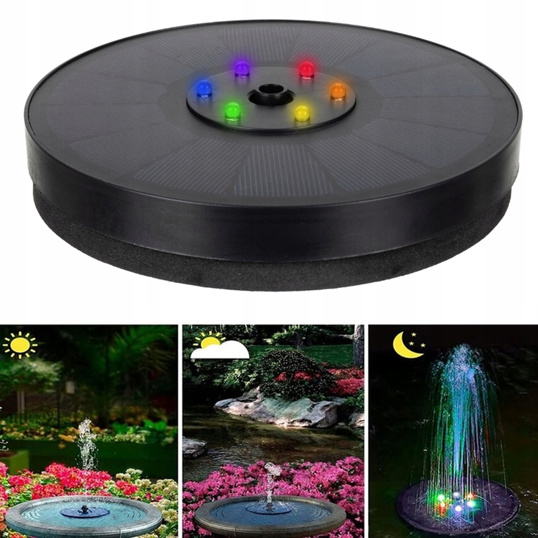 ПЛАВАЮЩИЙ СОЛНЕЧНЫЙ САДОВЫЙ ФОНТАН 6X RGB LED + 7 РАСПЫЛИТЕЛЬНЫХ НАСАДОК