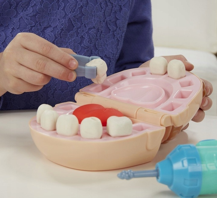 Он содержит специальные инструменты, позволяющие моделировать стоматологические процедуры, и красочную пластичную массу для моделирования зубов. Благодаря этому ваш малыш сможет в творческой и увлекательной форме изучить основные принципы гигиены полости рта.