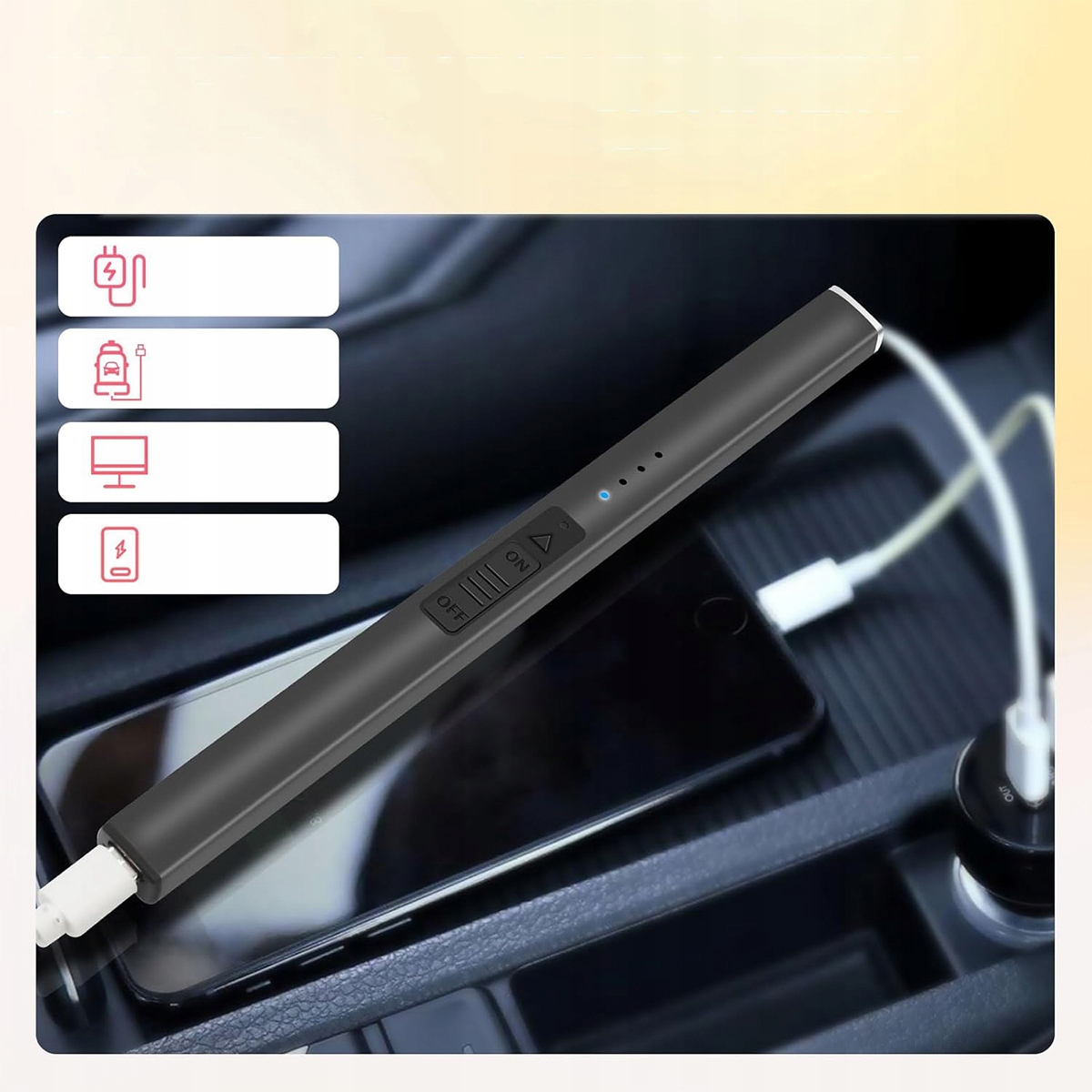 CH Зарядный порт более подходит для ваших потребностей в зарядке. Возможность зарядки через порт USB. Электрическая зажигалка использует литий-ионные батареи. Время зарядки составляет около 60-90 минут.