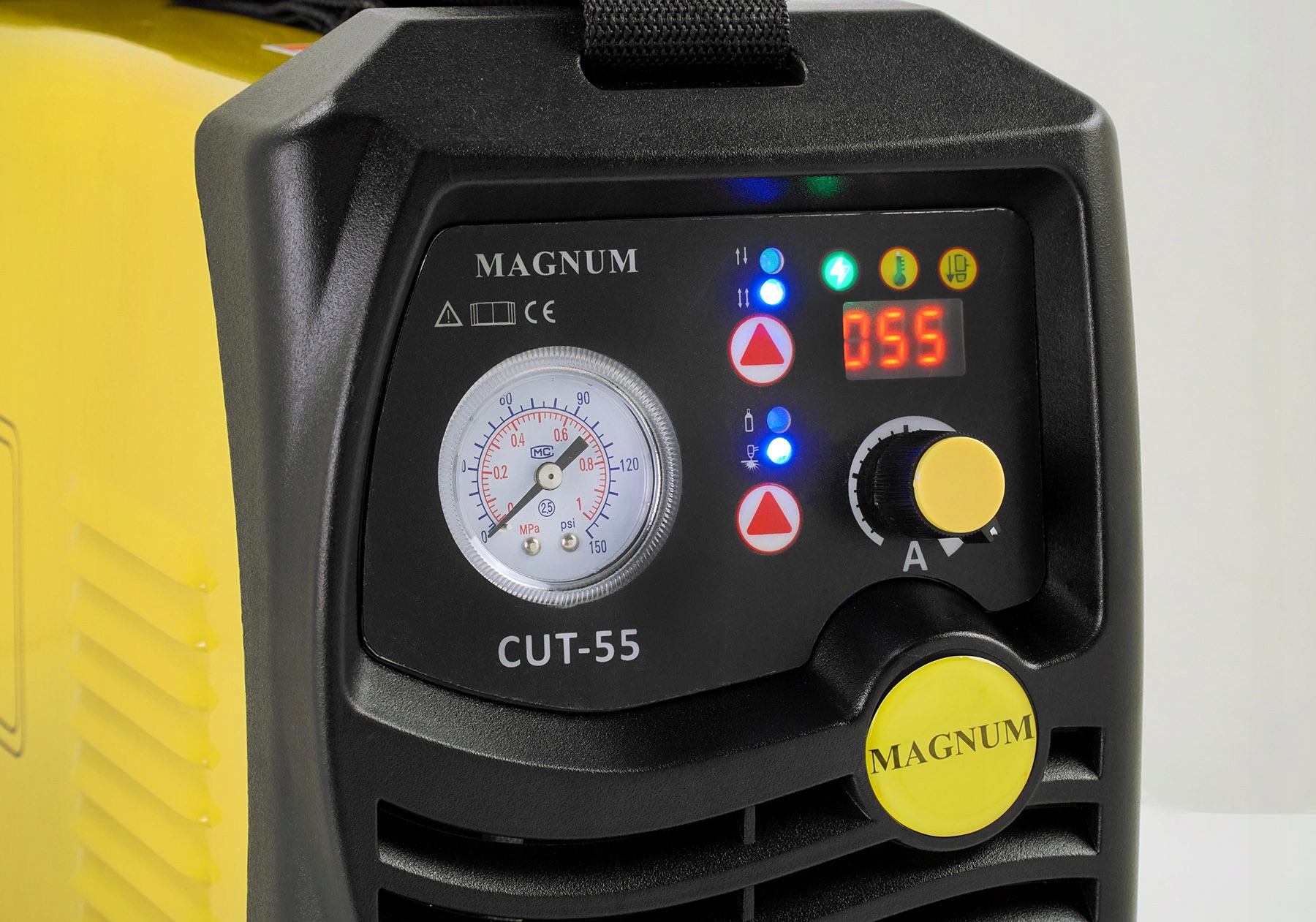 Magnum CUT 55 WP — небольшой источник плазмы, питающийся от однофазной сети 230 В. К преимуществам этой плазмы можно отнести держатель плазмы LT-50 (стандарт детали CB-50), высокое качество изготовления и хорошие параметры резки.
