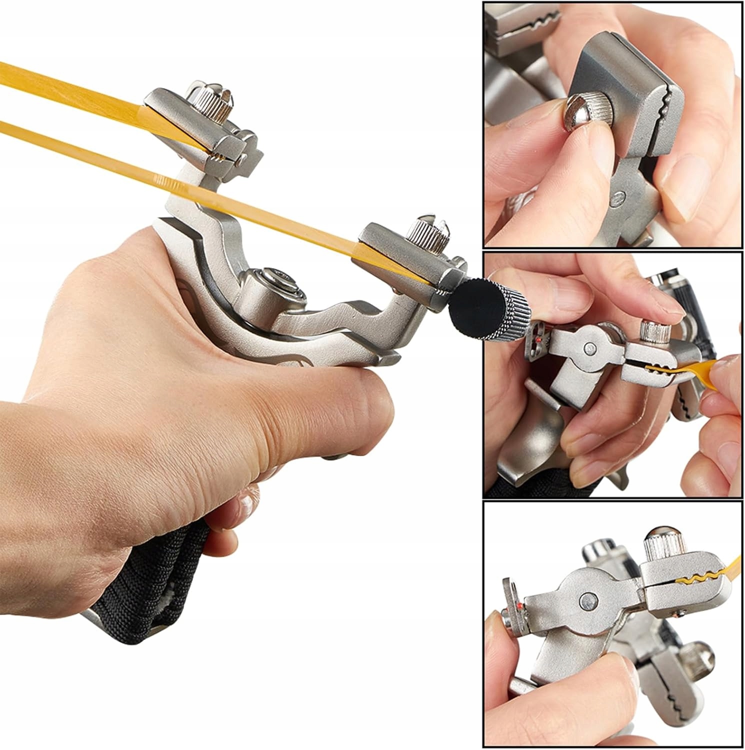 - Головка рогатки вращается на 360°, что обеспечивает гибкую регулировку опорной головки и точную автоматическую регулировку резиновых лент. Эта особенность также увеличивает эффективность выстрелов на 38%.