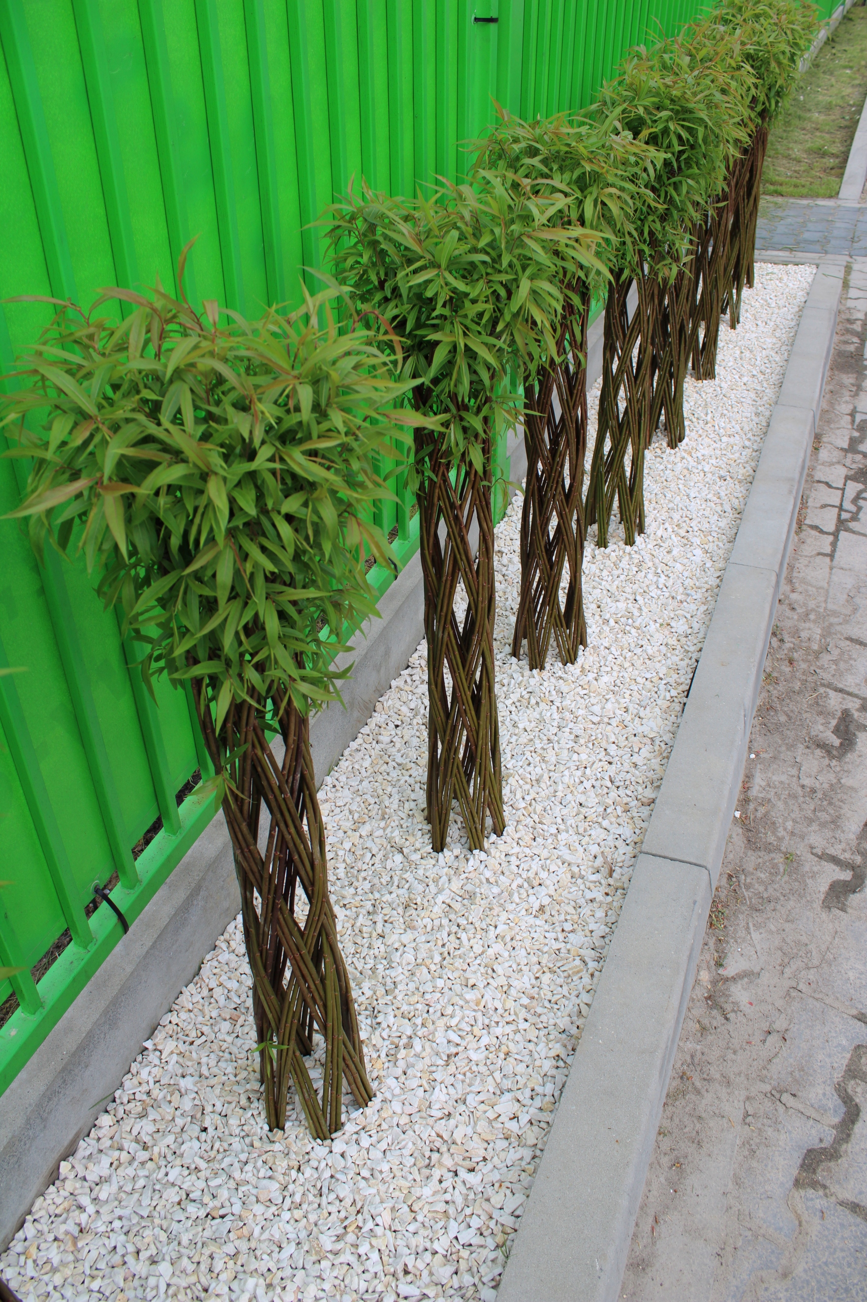 Побеги ивы блестящие, фиолетовые, заплетены в декоративные косы, а эти живые кустарники украшены зелеными, ланцетными листья, образующие наверху крону. Ранней весной (март-апрель) так называемые сережки покрываются красивыми бутонами. сережки, которые покрыты белым и серебристым пухом и со временем покрываются золотистой пылью. После цветения у дерева в кроне вырастают листья, и срезая их, мы можем создать сказочную форму. Зимой дерево сбрасывает листья, но декоративный ствол по-прежнему остается украшением, и подчеркнуть его привлекательную форму можно, разместив светильники в центре стебля.