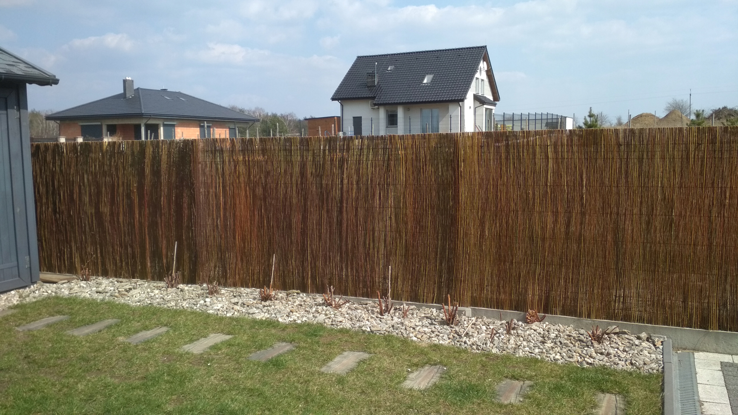 Коврики обвязываются через каждые 10 см оцинкованной проволокой на проверенных оригинальных станках австрийской компании BERGER. Мы используем только польскую подкладочную проволоку диаметром 0,8 мм и обмоточную проволоку диаметром 0,3-0,4 мм. Достаточный запас проводов, оставленных на концах длины каждого мата, позволяет соединить их любое количество, практически не имея видимых точек соединения, или укоротить их по мере необходимости. В зависимости от типа забора или балюстрады плетёные маты устанавливаются с помощью оцинкованной проволоки, гвоздей, самозажимных монтажных стяжек или обивочных скоб.