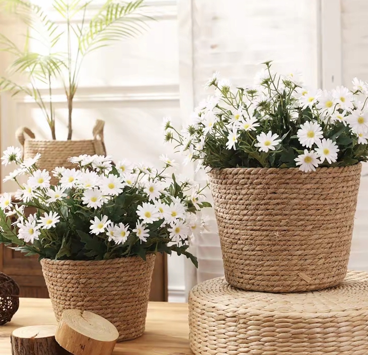 Натуральная, тщательно изготовленная корзина также является идеальным декоративным элементом для украшений на террасе, балконе или веранде. В него можно разместить не только приспособления для ухода за растениями, но и сами растения. Корзина станет отличным накрытием для цветочных горшков, как с живыми цветами, так и с искусственными растениями.