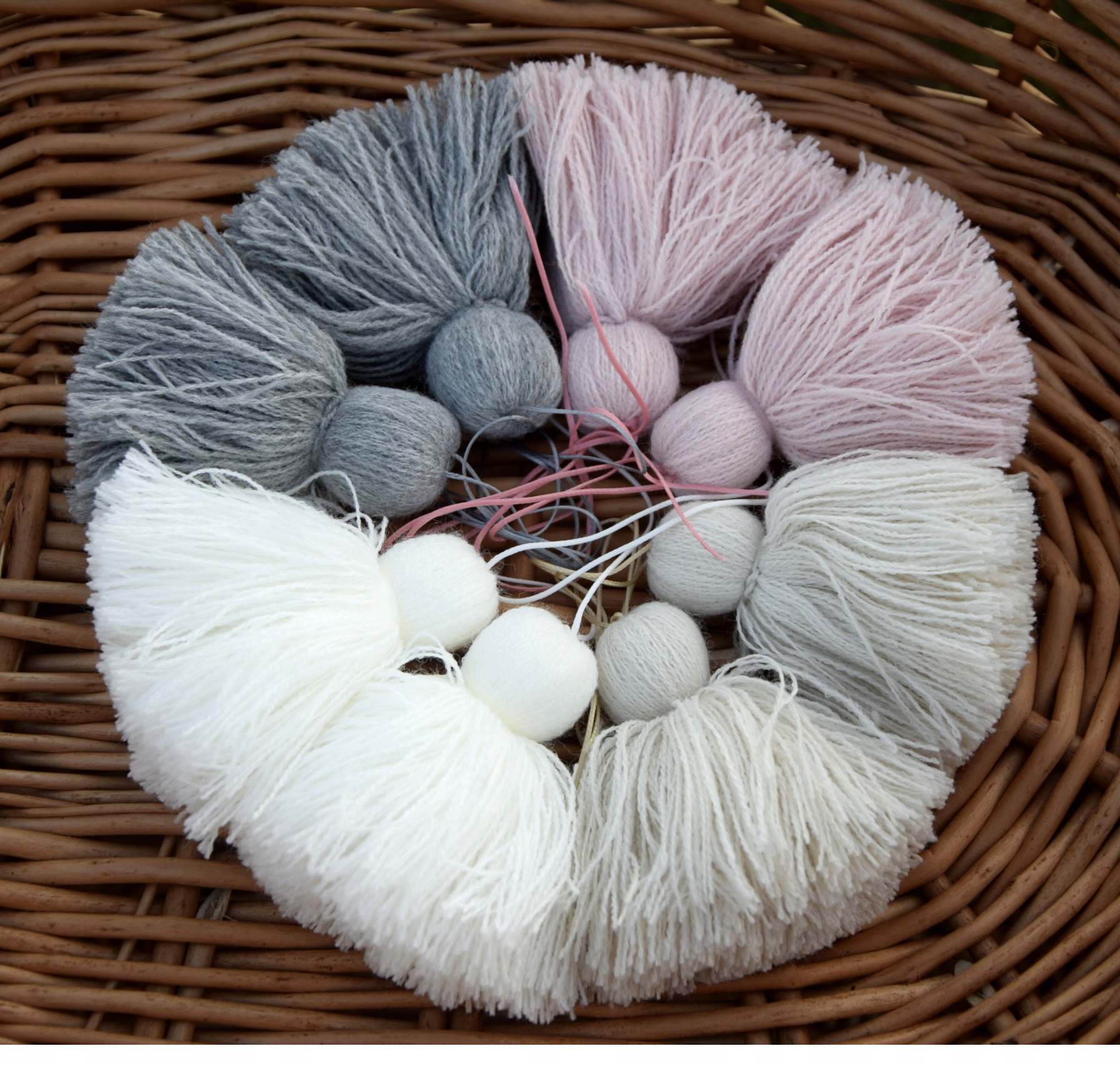 К корзинам прикреплены три кисточки, которые придают корзинам дополнительный шарм.