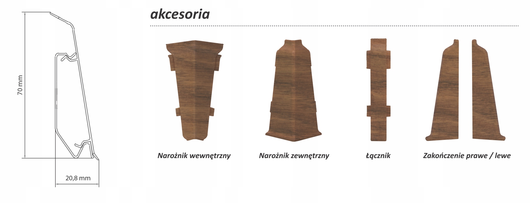 Полоска отличается высокой устойчивостью к повреждениям, водостойкостью и современной формой. Оптимальная высота 70 мм и использование гибких резинок по краям полосы делают ее практичным и эстетичным элементом внутренней отделки.
