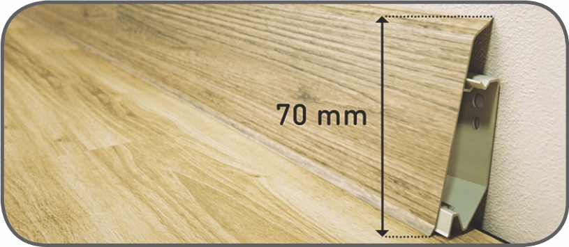 Оптимальная высота 70 мм и использование гибких резинок по краям планки делают ее практичным и эстетичным элементом внутренней отделки.