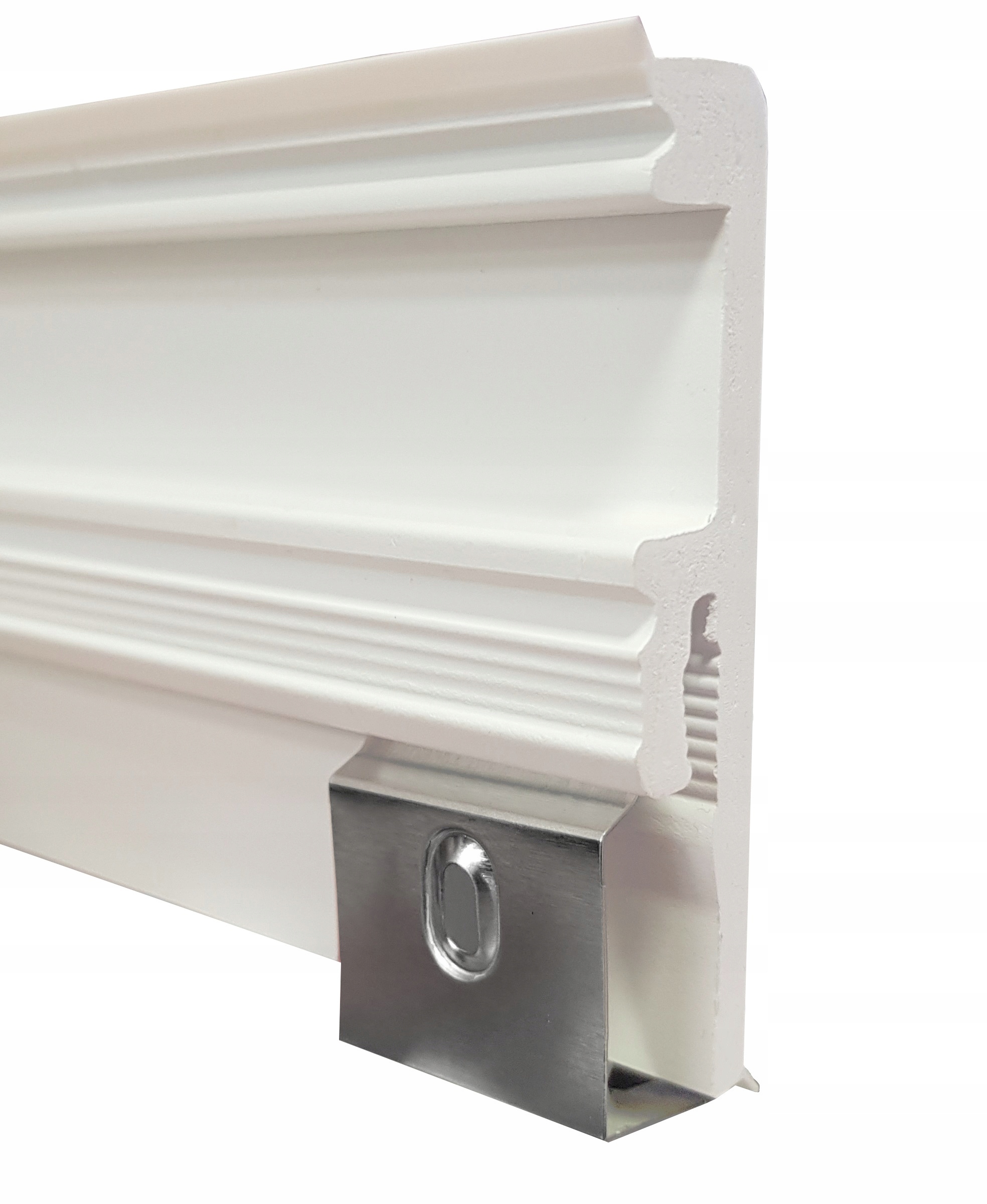 Плинтус Venezia имеет уплотнитель (резиновый) снизу и сверху, что позволяет устанавливать его идеально плотно. . как к стене, так и к полу. Такое решение позволяет устанавливать полосу на неровные стены, маскируя любые дефекты.