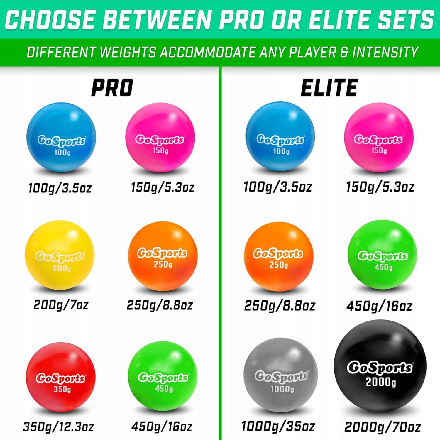 - Набор включает в себя: 6 шаров (100G - 450G) + Транспортная сумка