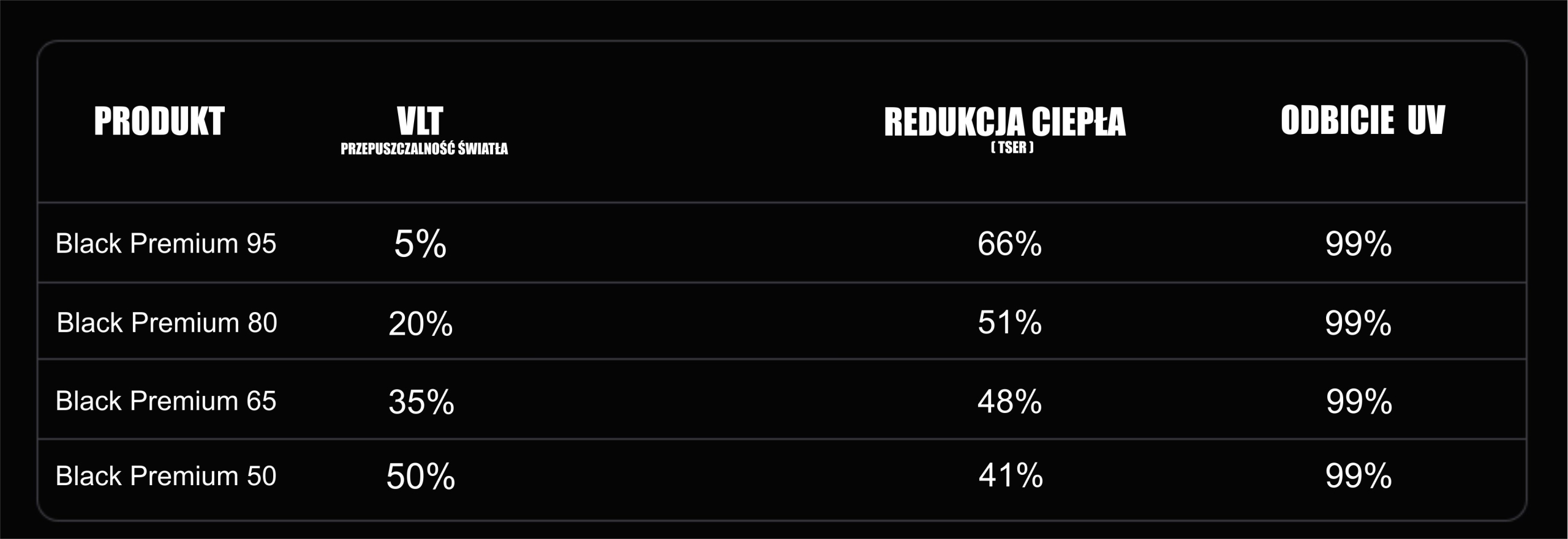 - Благодаря нашему опыту в тонировке окон, мы можем предложить пленку с высокими термоусадочными свойствами. Фольга Black Premium — модель пленки, которая пользуется отличной репутацией среди аппликаторов в Польше благодаря способности работать с пленкой на более требовательных окнах.