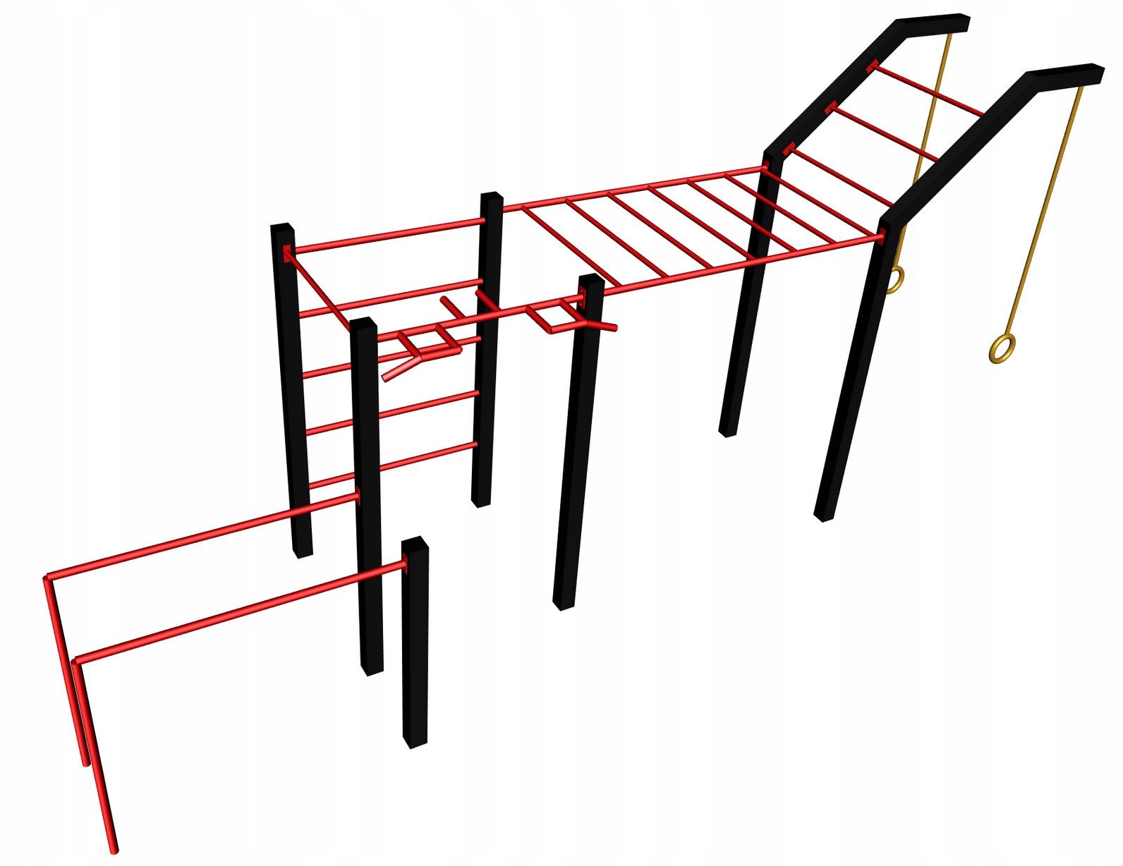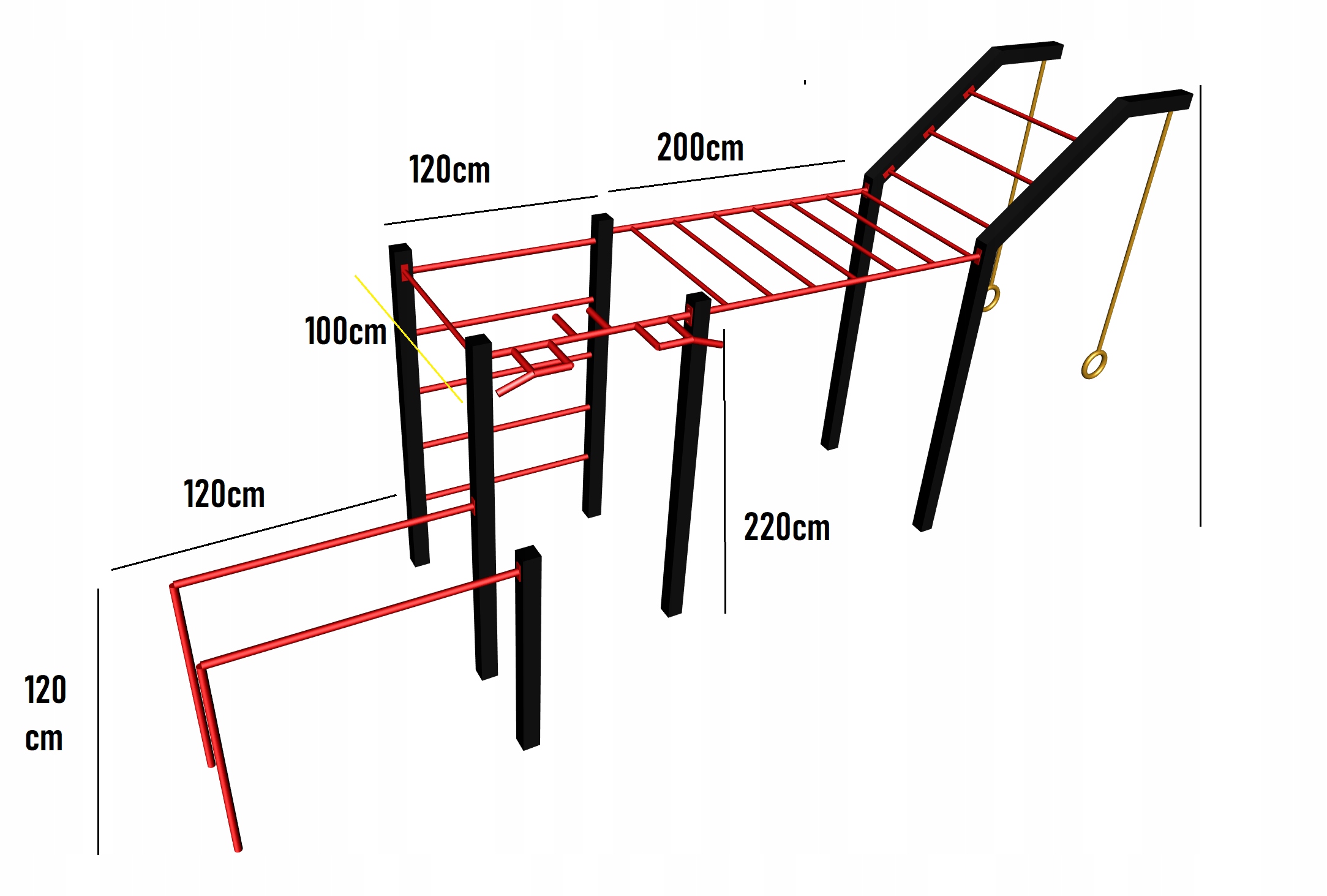 - Высота брусьев и горизонтальной лестницы: 220 см