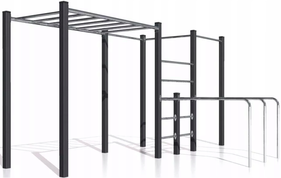 Комплект привинчен и пригоден для заливки в бетон, а благодаря антикоррозионной защита и порошковое покрытие, идеально подходит для тренировок на открытом воздухе, независимо от сезона