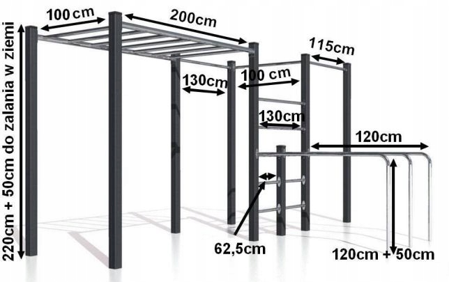 - Высота брусьев и горизонтальной лестницы: 230 см