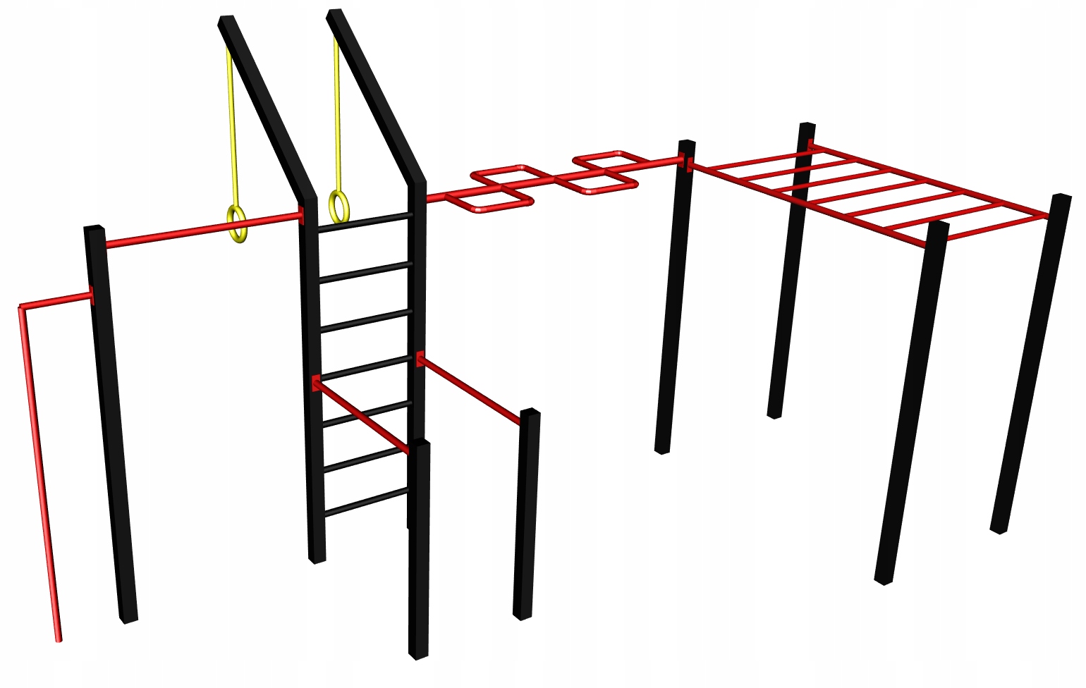 - Высота брусьев и горизонтальной лестницы: 230 см