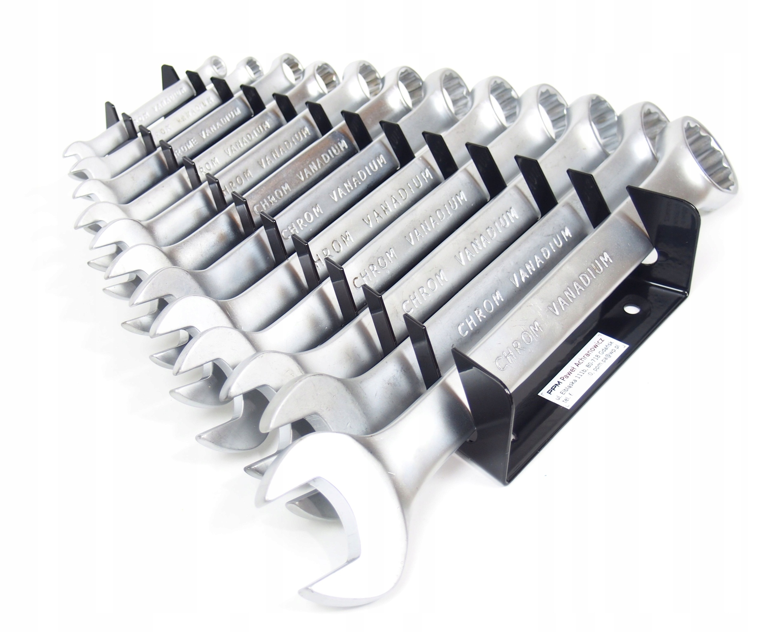 На этом аукционе мы должны предложить настенную вешалку для набора плоских или плоских гаечных ключей. Вешалка, изготовленная из порошкового стального листа. Вешалка имеет 12 ключевых розеток.