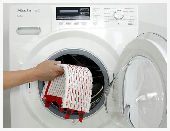 Чехол вращающейся швабры Ultramat крепится с помощью зажимов, что позволяет легко снимать и надевать его снова. Вставку можно неоднократно стирать в стиральной машине при максимальной температуре 60 градусов.