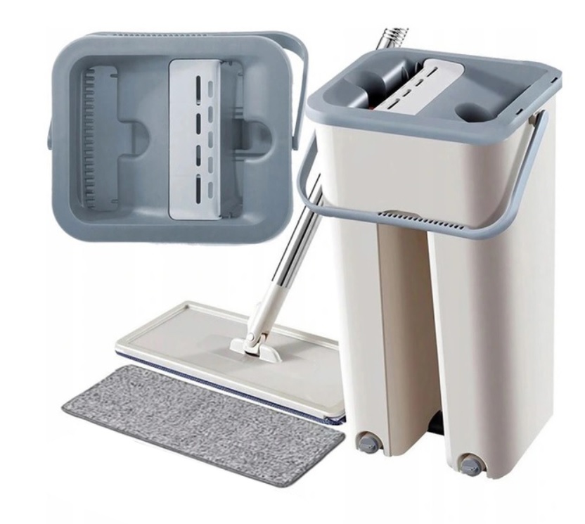 ПЛОСКА ШВАБРА З ПРУЖИНОЮ І ДВОКАМЕРНИМ ВІДРОМ ДЛЯ ПІДЛОГИ
