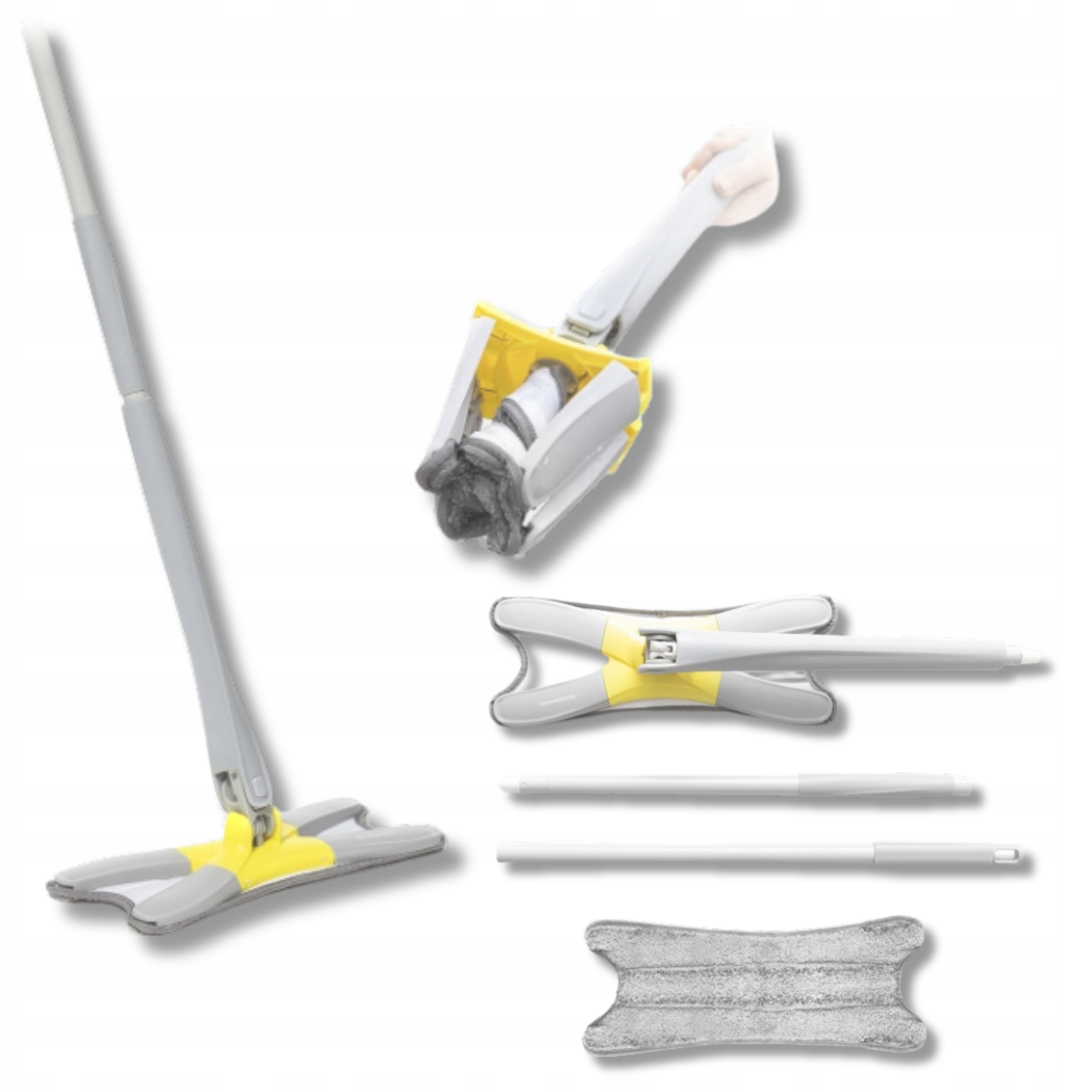Оборудован вращающейся головкой 360 x 360 и палкой в скользящей структуре (до 140 см), что позволяет вам достичь даже самых сложных мест. Благодаря простой дренажной системе очистка становится гораздо более удобной и эффективной, что экономит время и усилия. Эта замечательная стиральная швабра чрезвычайно впитывает и полностью удаляет пыль и грязь. Набор включает в себя два высококачественных и прочных накладка для очистки из микрофибры, повторно используемых, которые можно легко промыть в стиральной машине (до 500 промывок). У него также есть небольшая щетка, встроенная в ручку, которая используется для очистки швабры. Нет необходимости использовать ведро для очистки, потому что крышки можно промыть под прямым потоком воды. Однако использование ведра (не включенного в набор). Продукт может быть полностью сложен, что облегчает транспортировку и хранение