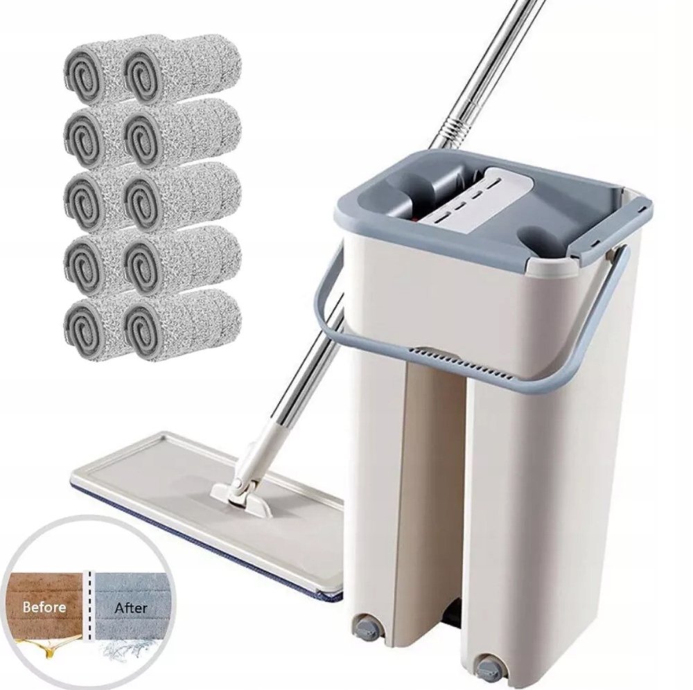 Плоская швабра с двухкамерным ведром и 10 вставками из микрофибры