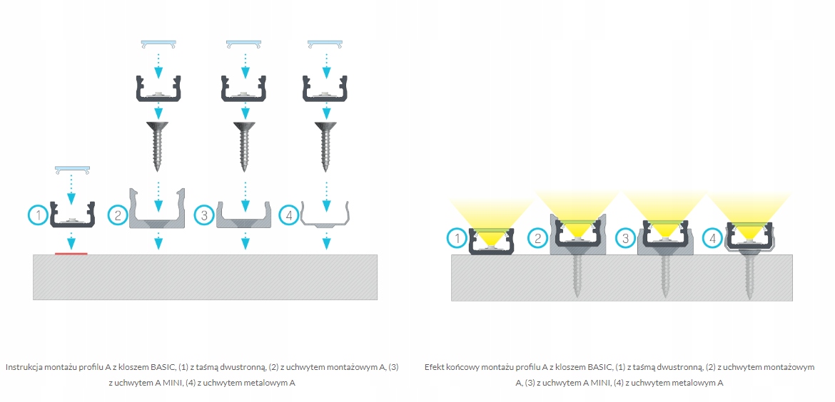 Мы рекомендуем для профиля светодиодные ленты из нашего предложения, любые светодиодные ленты, имеющиеся в нашем предложении, подходят к профилю типа А, в том числе: SMD 3528, 2835, 5050, 5630 и RGB и мощностью от 4,8 до сверхсильных 20Вт/м.