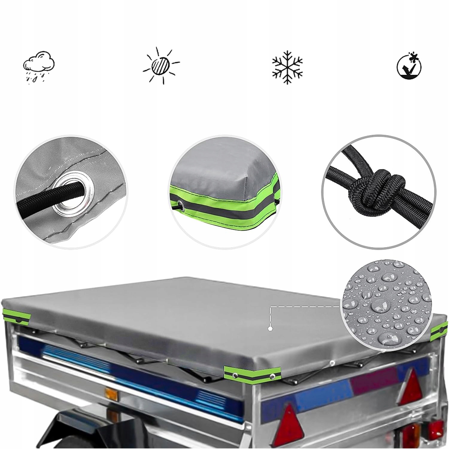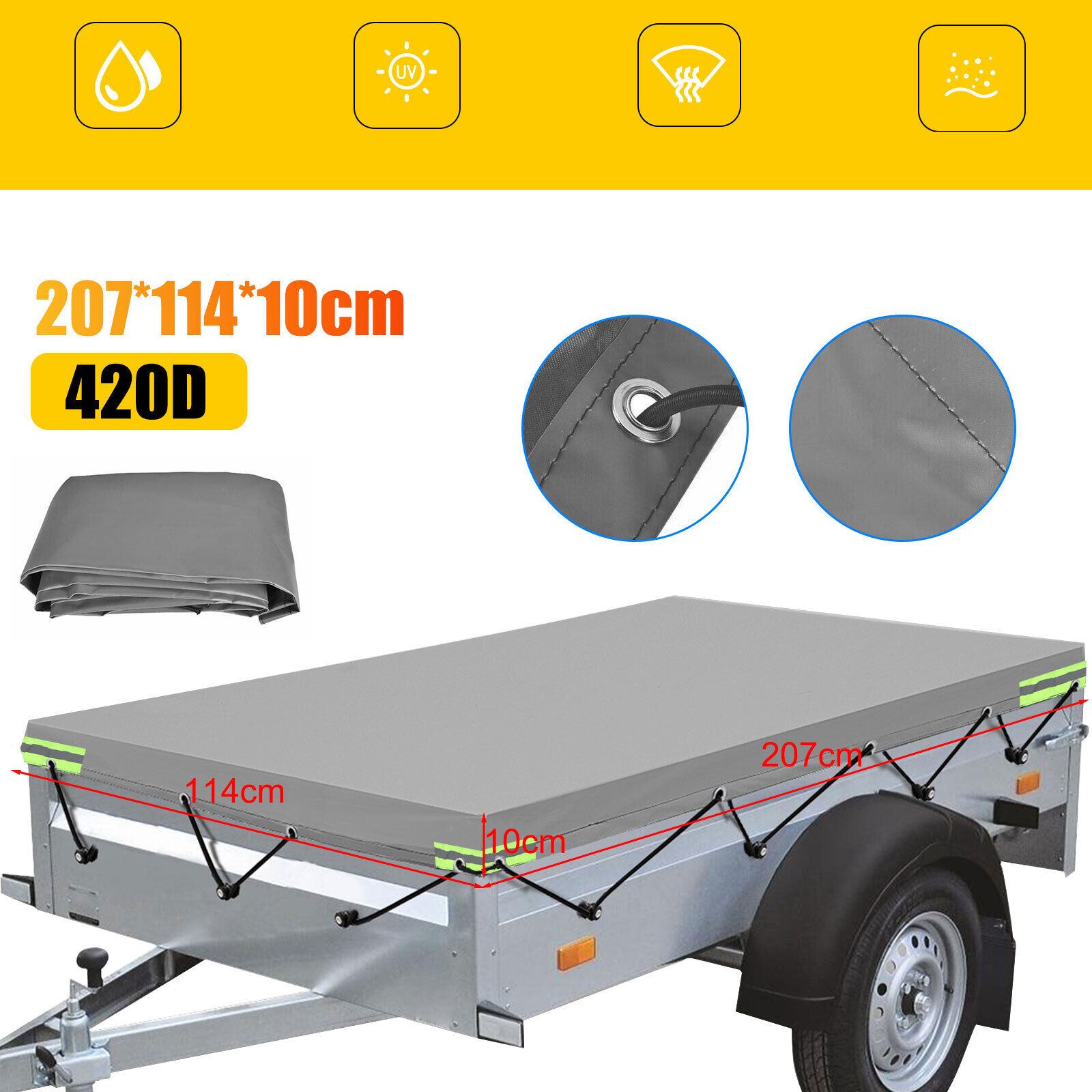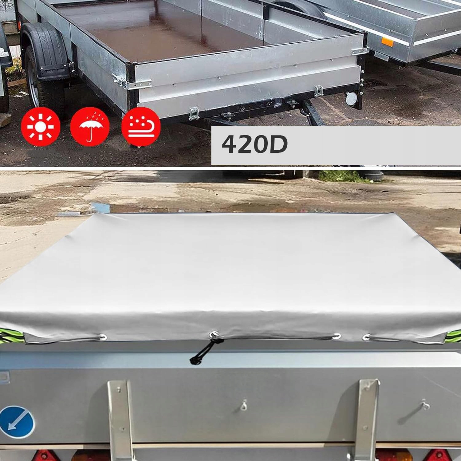 ✅ брезент для трейлера: вдоль всего внешнего края крышки трейлера обрезан и изготовлен из двух слоя материала. Верхний -tarpaulin с высотой высотой 10 см делает трейлер хорошо во время вождения, а коробка передач остается полностью сухой