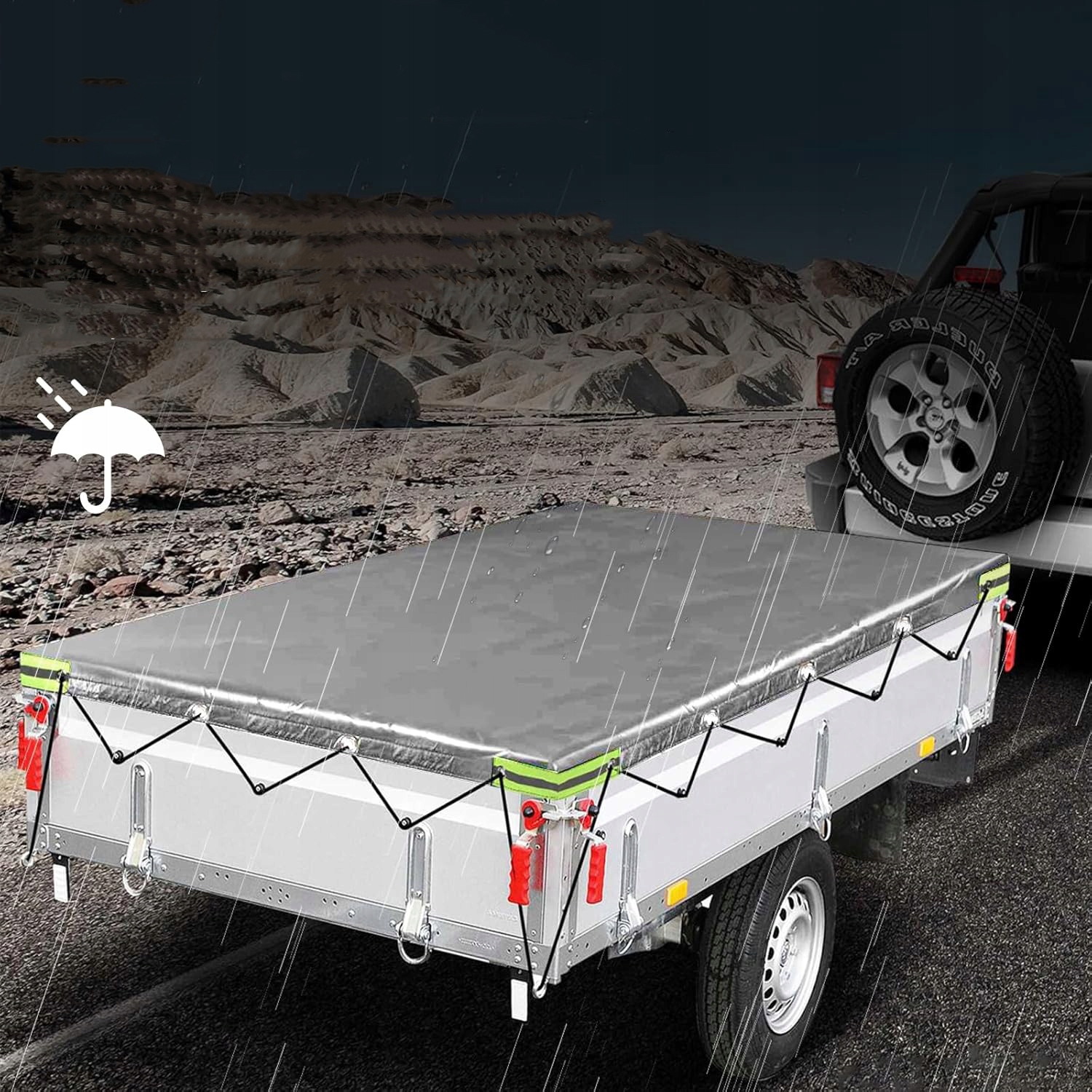 ✅ Диапазон доставки включает в себя: брезент для трейлера + гибкий ремень. Вам не нужно тянуть или придумать, плоский брезент разработан и прекрасно защищен.