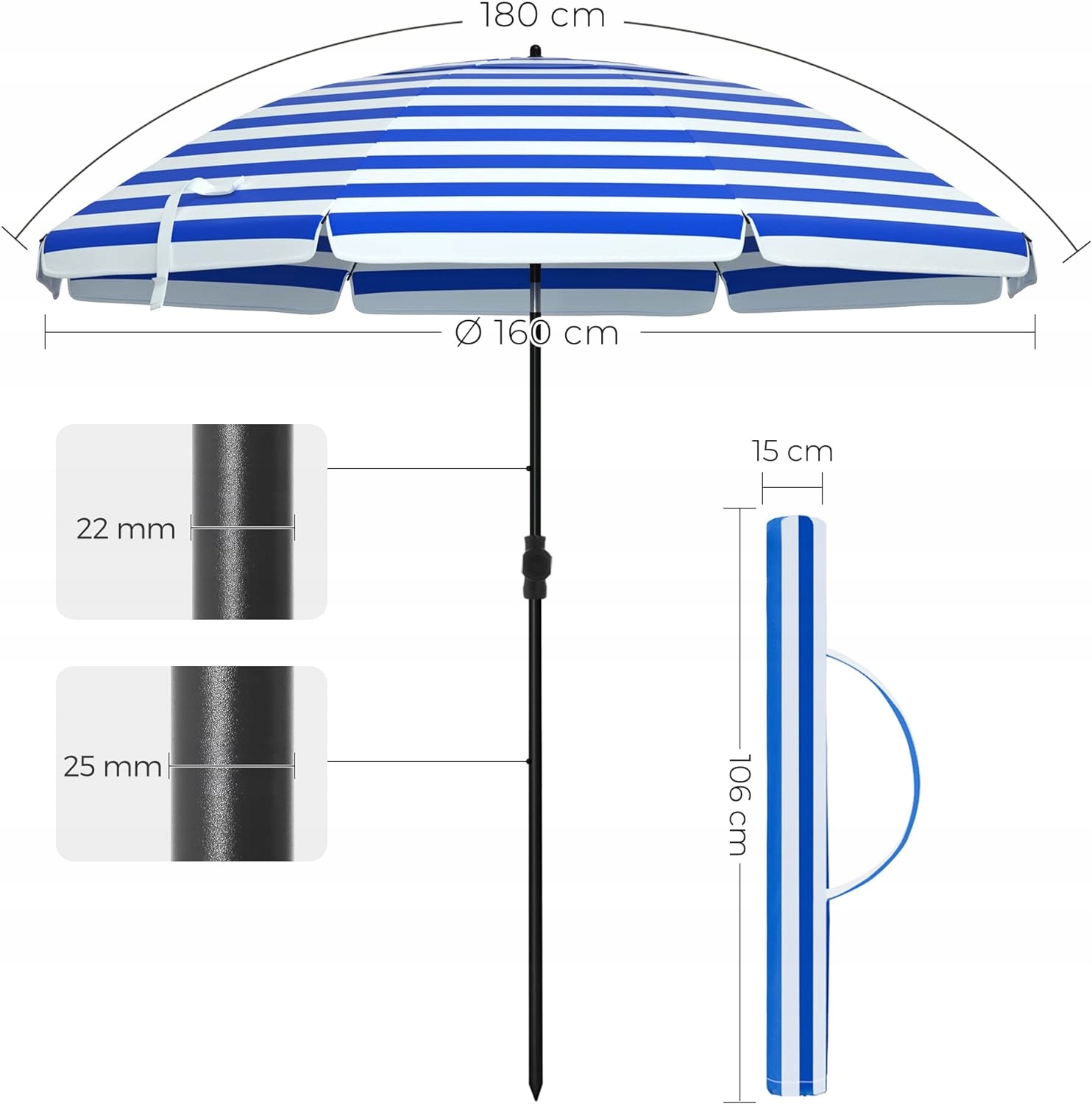 Пляжный зонтик, 1,6 м, Солнечная защита от UPF 50+, портативный