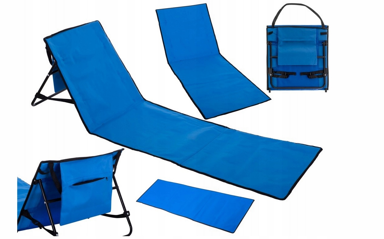 ЛЕГКО ТРАНСПОРТИРОВАТЬ — пляжный коврик с регулируемой спинкой благодаря складной конструкции и небольшому весу является чрезвычайно удобным аксессуаром для транспортировки.