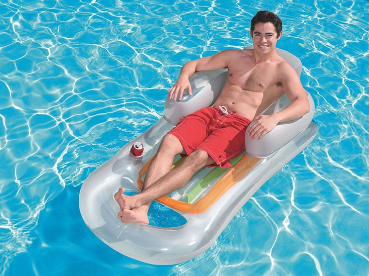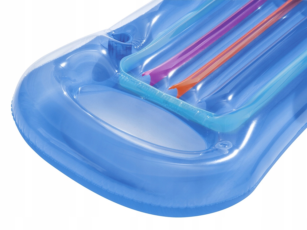 Разноцветные вставки привлекают внимание и позволяют легко расположить матрас. Легкое надувание кресла для плавания возможно благодаря клапанам, которые прекращают выход воздуха. Две отдельные воздушные камеры позволяют правильно надуть все это, что гарантирует устойчивость матраса и повышает комфорт его использования. Кресло для плавания имеет профилированную спинку, подлокотники и подголовники, которые гарантируют стабильную поддержку головы, спины и рук и удерживают их в удобном положении, способствующем отдыху. Это отличный вариант для людей, которые любят плавать в воде, не погружая в воду все тело. Дополнительным преимуществом является отверстие в матрасе для окунания ног для охлаждения и место для хранения напитка. В комплект также входит заплатка, позволяющая произвести любой ремонт в случае прокола матраса.