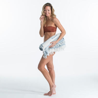 Наши дизайнеры создали это изделие для высыхания, переодевания и отдыха до и после пляжного отдыха. Подходит для всех! Очень большое полотенце Fouta (190 x 190 см), экологически чистое, из 100% органического хлопка, компактное в сложенном виде для своего размера, а также позволяет легко переодеться в пончо.