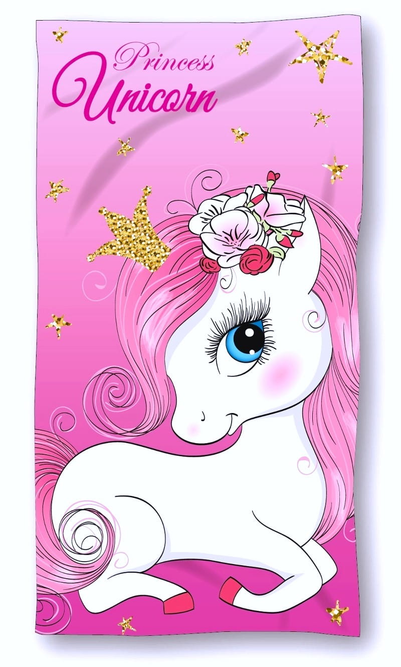 - Большое розовое детское полотенце для пляжа или бассейна с мотивом единорога.