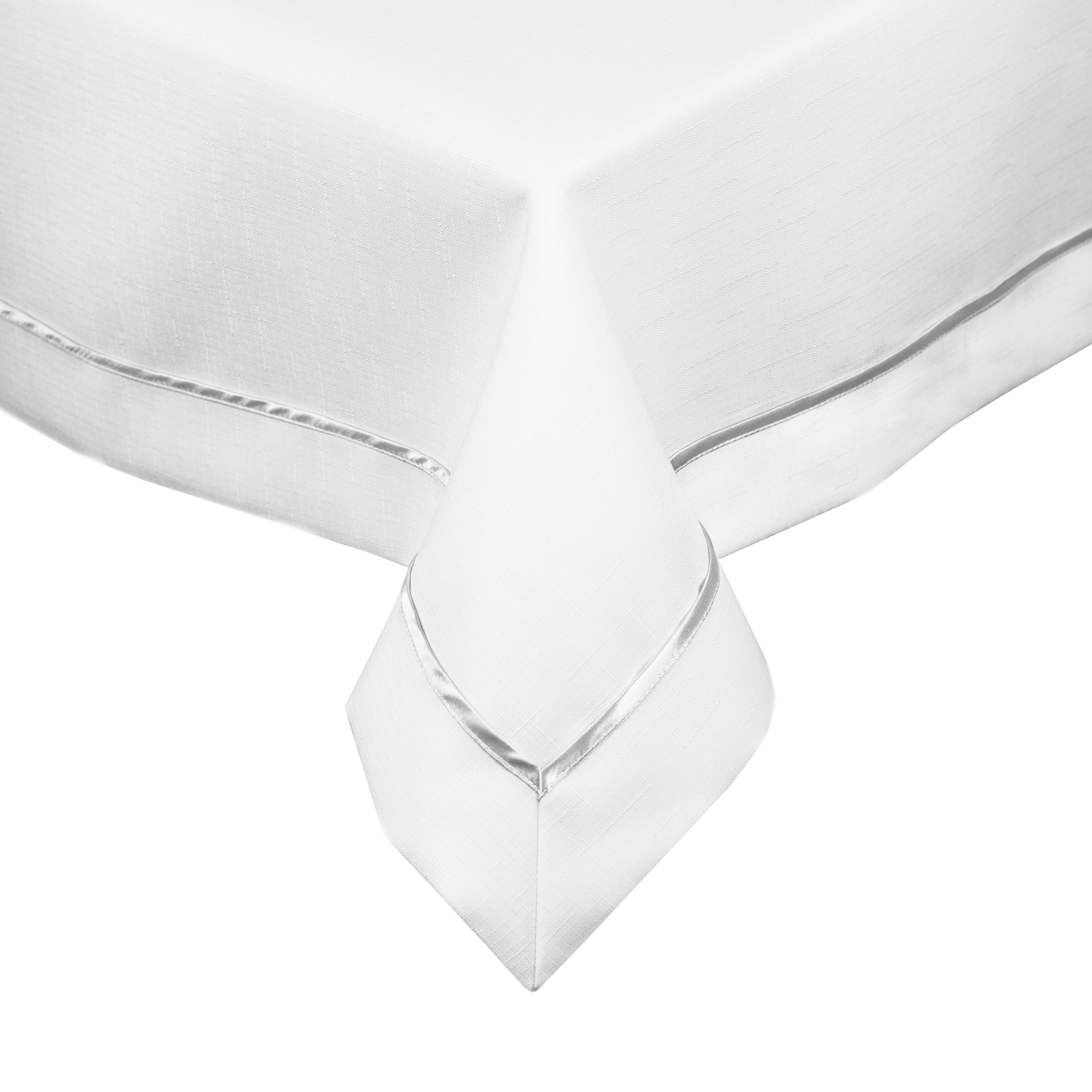 Предлагаем грязеотталкивающую скатерть из 100% полиэстера. Ткань имеет льняную структуру (дождь) и устойчива к загрязнениям. Капли жидкости на скатерти можно собрать, например, бумажной салфеткой.