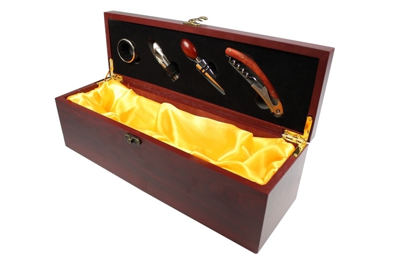 Представляем Вам держатель для бутылок с набором винных аксессуаров в коробке. Боттлер вмещает одну бутылку вина. Стенки разливочной машины закреплены пенопластом, обернутым бархатистым желтым пенопластом, который прекрасно смягчает содержимое коробки и защищает его от повреждений.