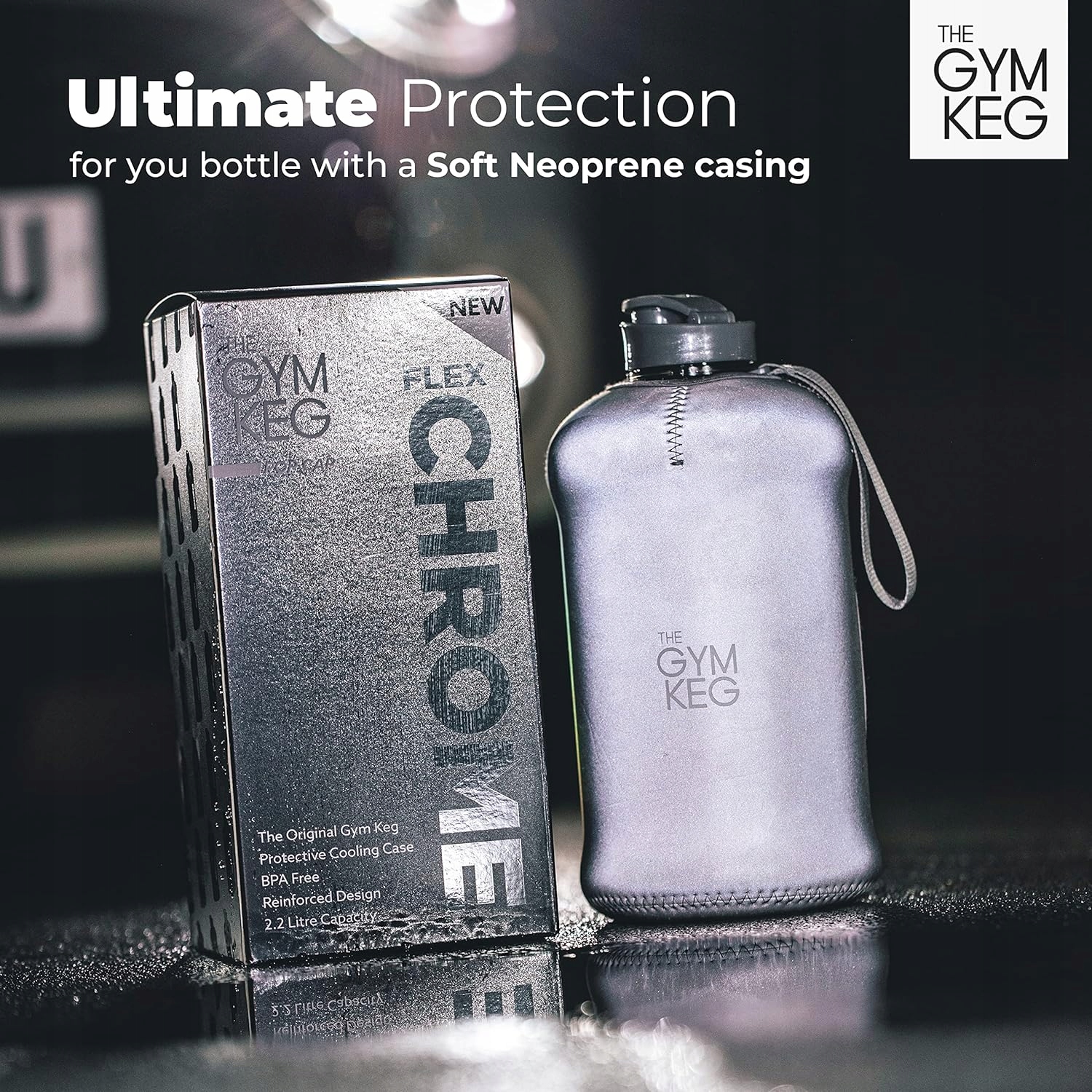 Непротекающая бутылка с укрепляющим рукавом. Большая бутылка для бочонка для спортзала изготовлена на 40 % больше пластика, чем стандартная пластиковая бутылка для воды, и оснащена неопреновым рукавом, на который подана заявка на патент. Это делает бутылку для воды объемом 2,2 л чрезвычайно прочной и подходящей для использования в помещении, на улице и в поездках.